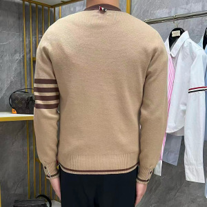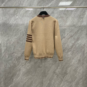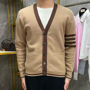 厂家直营TB秋季新款撞色四杠条纹V领针织羊毛开衫男女同款舒适款