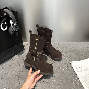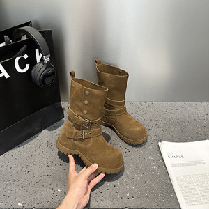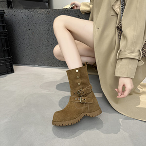 厚底增高马丁靴女2025秋季新款复古设计感皮带扣英伦风骑士短靴