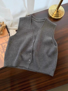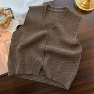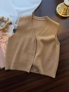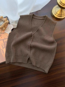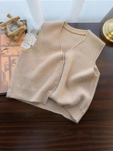 马甲开衫韩系休闲宽松舒适针织背心2025秋季新款V领无袖毛衣上衣