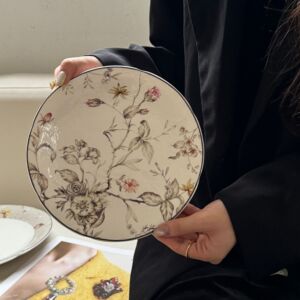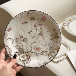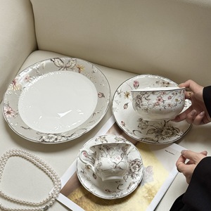 法式中古风灰色花卉浮雕陶瓷西瓷盘咖啡杯碟系列甜品菜盘子批发