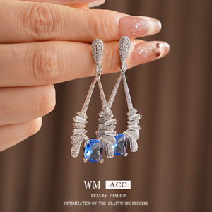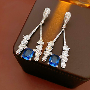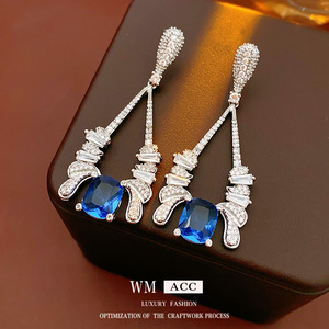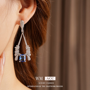 中古vintage锆石水滴方形耳环轻奢高级感耳钉设计感小众夸张耳饰