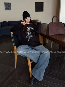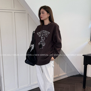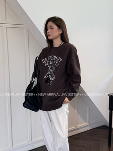 JVV十三行2025秋季新款美式复古印花长袖上衣宽松休闲卫衣女71359
