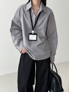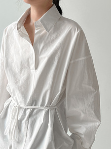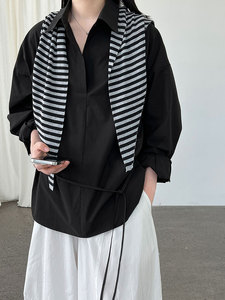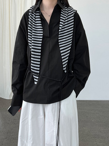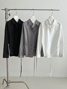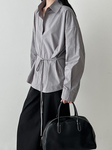 NS韩系POLO领休闲衬衫女25秋季新款设计系带收腰显瘦复古小衫3720