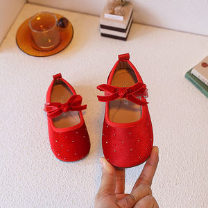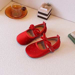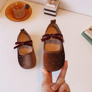 女宝宝童鞋2025秋冬季新款女童丝绒面蝴蝶结公主鞋儿童设计感单鞋