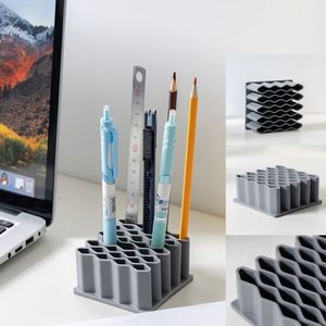 笔筒收纳波浪笔架办公室宿舍桌面药膏格子化妆刷多功能收纳置物架