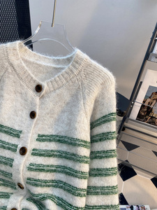 韩系慵懒风复古条纹毛衣外套女秋季2025新款宽松软糯针织开衫上衣
