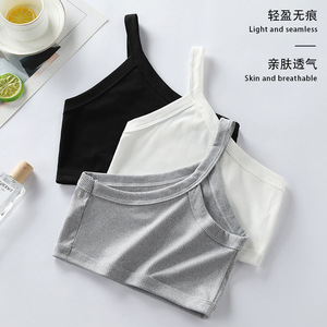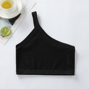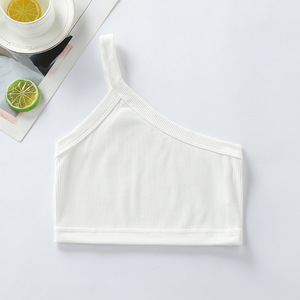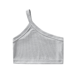 跨境欧美螺纹发育期吊带背心小女孩少女内衣单肩运动镂空上衣女童