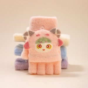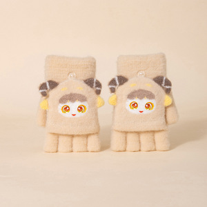 儿童翻盖手套男女童卡通半指套宝宝秋冬加厚保暖分指写字五指套新