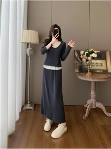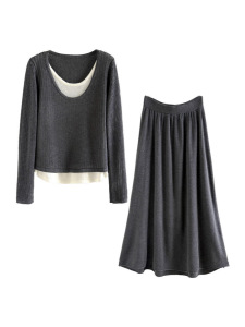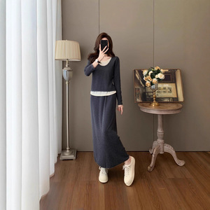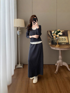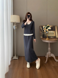 2025秋冬新款气质时尚减龄针织套装假两件显瘦毛衣半身裙两件套装