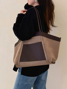 一件代发2025新款时尚复古大容量托特包女单肩包质感麂皮绒手提包