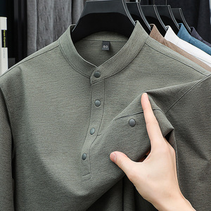 长袖t恤男春秋季薄款商务休闲中年爸爸装翻领T恤立领Polo衫四合扣
