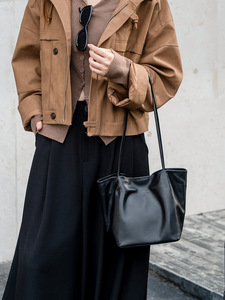 头层羊皮腋包2025秋季新款简约托特包慵懒松弛感水桶包hobo肩包女