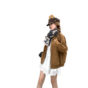 美式复古麂皮夹克女装2025年春季爆款宽松翻领休闲百搭显瘦外套潮