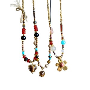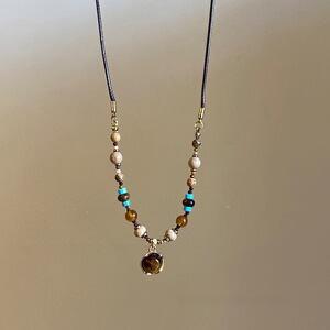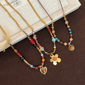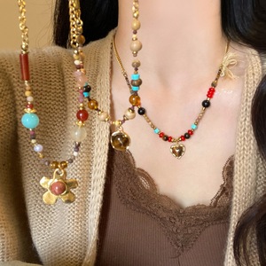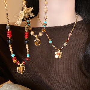 美拉德虎眼石爱心串珠项链女复古轻奢高级感锁骨链百搭巨好看配饰