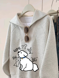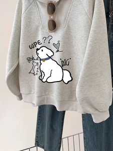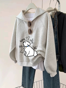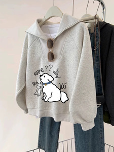 韩国半拉链套头卡通小狗卫衣女秋冬25新爆款翻领宽松长袖外套上衣