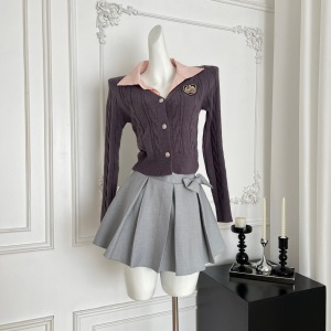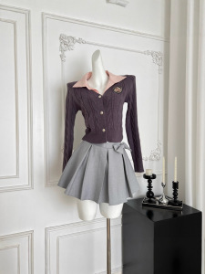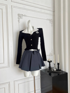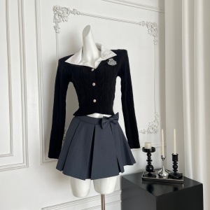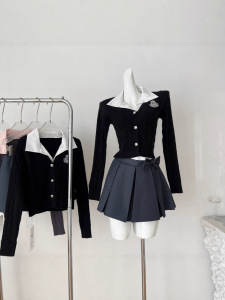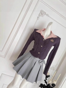 『欣幸』猫年尖子生甜妹刺绣学院风洋气套装上衣百褶半裙针织套装