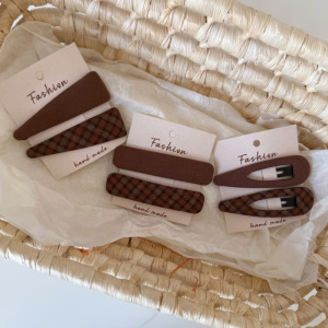 美式甜心棕色格纹发夹bb夹复古布艺时尚百搭刘海碎发边夹女发饰