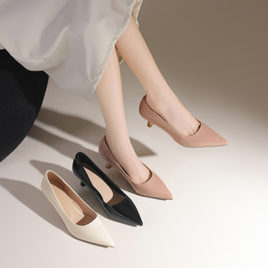 ZHR则则【秒高5.5CM】裸色高跟鞋女2025新款气质浅口单鞋职场女鞋