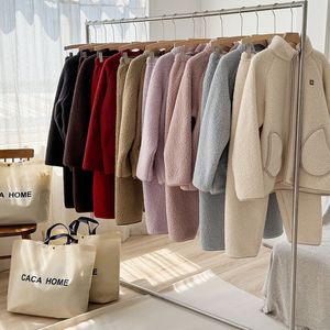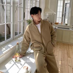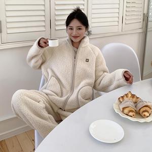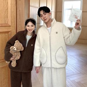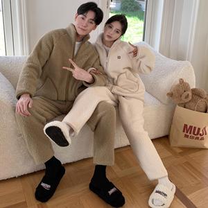 CaCa情侣睡衣羊羔绒冬季立领拉链男休闲外穿运动加厚家居服女套装