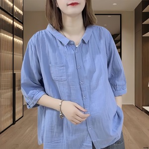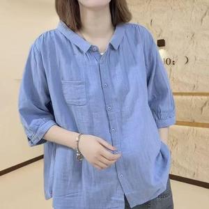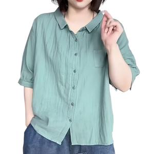 短袖纯色单排多扣显瘦棉麻衬衫设计感薄款衬衣上衣时尚百搭潮
