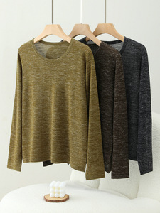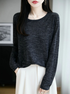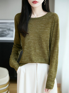 彩麻系列亚麻混纺点纱针织圆领简约套头长袖针织衫早秋薄毛衣女
