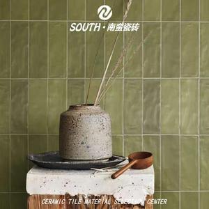 65x200渐变橄榄绿色手工砖中古风民宿卫生间厨房瓷砖餐厅条形墙砖
