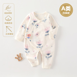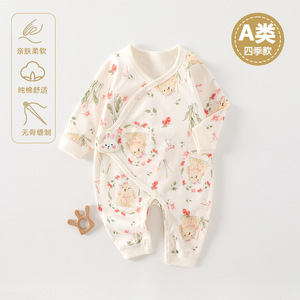 2025新款婴儿连体衣纯棉A类新生儿蝴蝶衣四季款无骨男女宝宝爬服