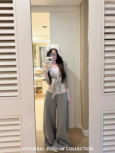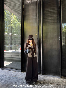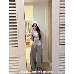 YUYUREAL 时髦套组 假两件长袖tee/空气层宽腰针织裤