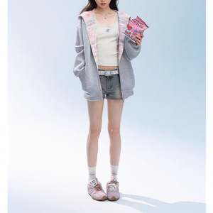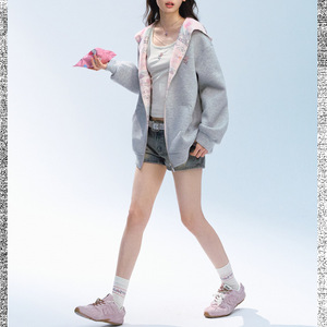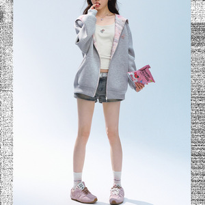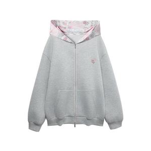 【田曦薇同款】美式灰色连帽卫衣外套女秋季宽松百搭甜美休闲夹克
