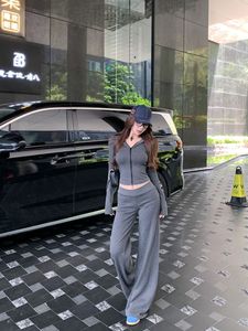 慵懒风复古连帽长袖卫衣外套女秋季条纹套装阔腿裤休闲裤子两件套