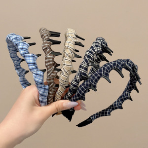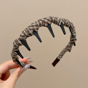 法式复古条纹高颅顶发箍女2025新款洗脸带齿防滑发卡日常外戴头箍