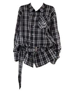 大码胖妹妹美式复古刺绣格子长袖衬衫女春季设计感可调节收腰衬衣