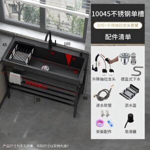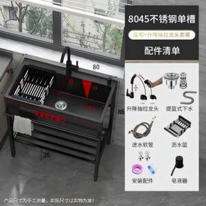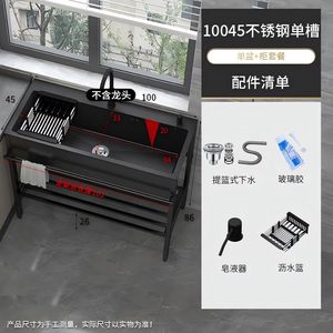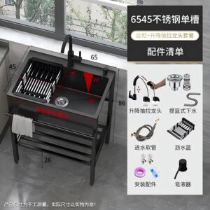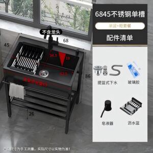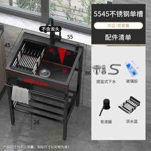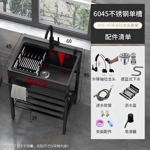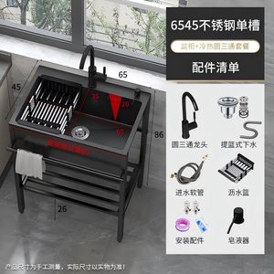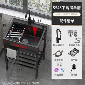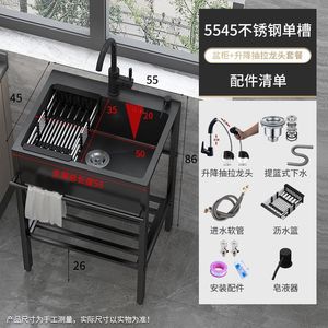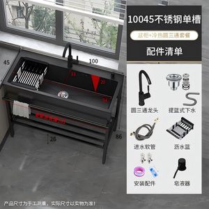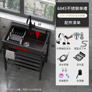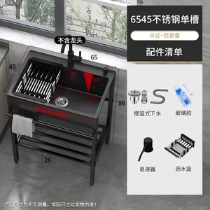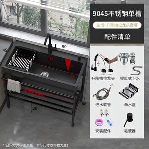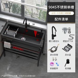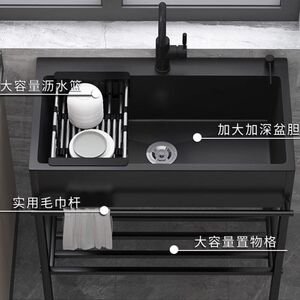 落地式大单槽黑色支架水槽不锈钢小户型家用厨房水池洗碗池洗菜盆