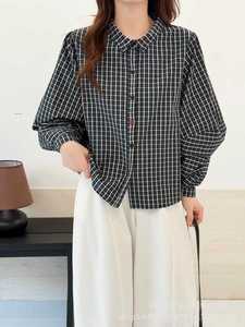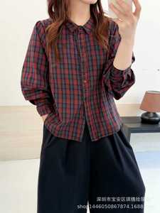 琪镌绘制秋季2025新款红色格子衬衫女装内搭休闲宽松长袖法式衬衣