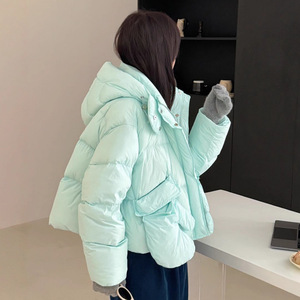 手套款羽绒服女2025冬季新款白鸭绒短款时尚宽松连帽面包服外套