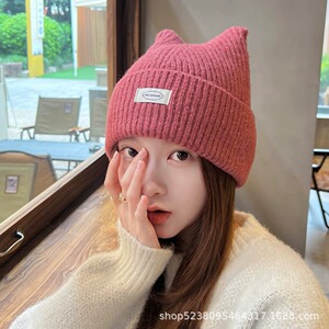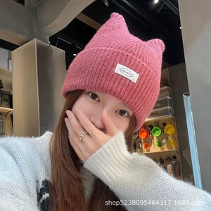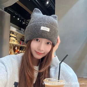 帽子女款针织帽猫耳朵大头围显脸小护耳保暖防寒加厚秋冬季毛线帽