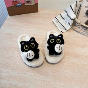 女童毛毛鞋秋冬季新款加绒外穿棉拖鞋中大童卡通猫咪一字棉拖鞋
