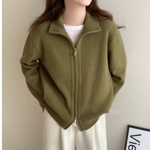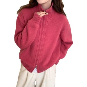 阿诗蜜白色高领毛衣外套女2025新款春秋季高级感穿搭拉链开衫上衣