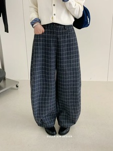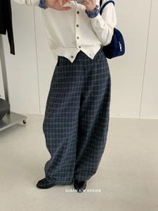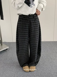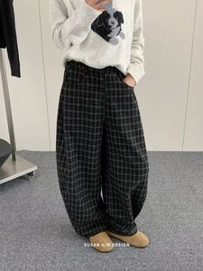 苏珊 2025秋季新款韩系百搭格子慵懒风阔腿裤休闲弯刀裤女DS292