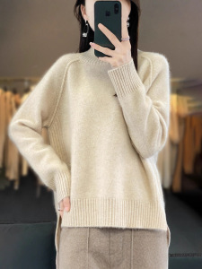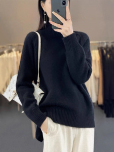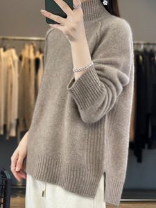高领毛衣女2025新款秋冬纯色百搭宽松开叉针织衫新款洋气套头上衣