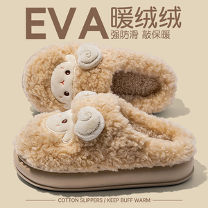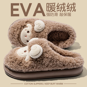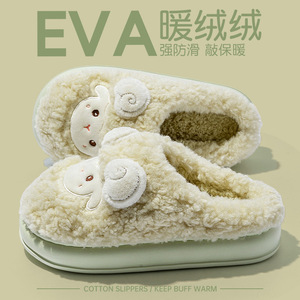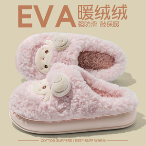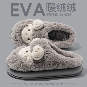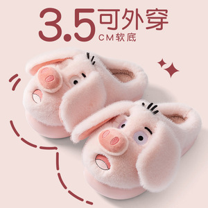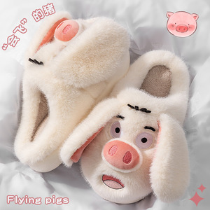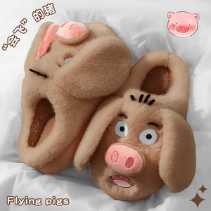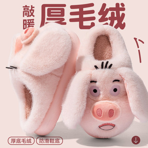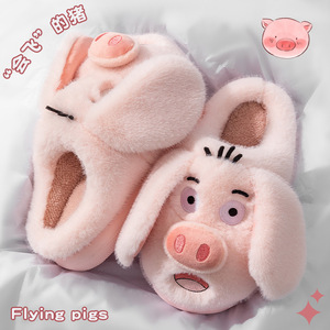 可爱卡通飞天猪毛绒拖鞋女冬季室内家居保暖防滑儿童男童小猪棉拖