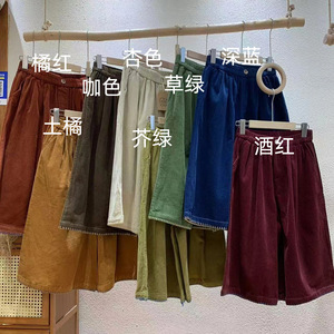 100棉灯芯绒七分裤 2025秋季新款 下摆缝线阔腿休闲裤女靴裤2626
