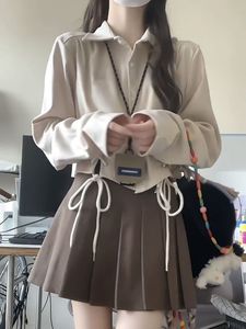 两件套装女 秋季新款学院风绑带长袖衬衫上衣女+百褶短裙休闲套装