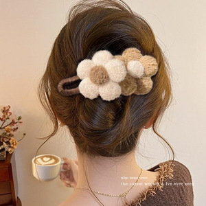 奶咖毛绒花朵鸭嘴夹~约11.5cm