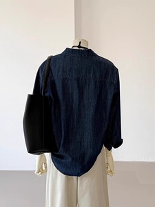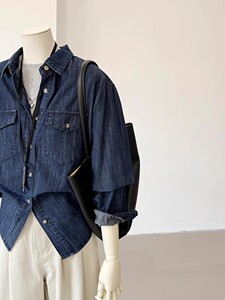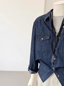 CHAO级推荐!秋季新品~韩版深蓝色工装柔软水洗工艺牛仔衬衫外套