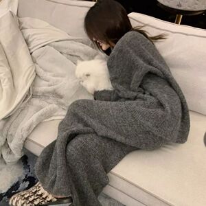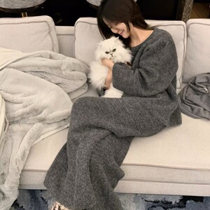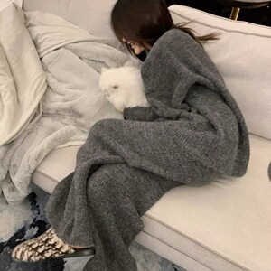 大码高级感针织套装女秋冬300斤胖妹妹宽松慵懒风毛衣长裤两件套
