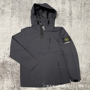 工厂直销石头连帽春秋季工装冲锋衣男款外套新款长袖潮牌防水夹克