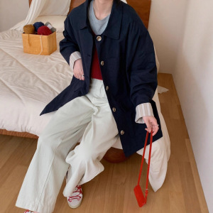韩版时尚翻领多口袋风衣外套女秋季宽松休闲气质工装上衣