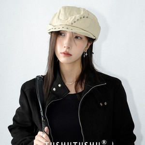 英伦复古铆钉~不规则设计贝雷帽子女秋冬时髦百搭画家帽报童帽