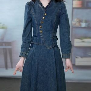 高档气质优雅时尚牛仔连衣裙秋季2025新款女装漂亮妈妈假两件裙子